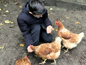 Tag für Tag wurden die Hühner zutraulicher und neugieriger. Kein Wunder, wurden sie doch von ihren jungen Fans mit gesunden Leckereien und Streicheleinheiten verwöhnt. Doch bei der Pflege ging es nicht nur ums Füttern und Kuscheln. Frühmorgens hieß es: ran an den Hühnerstall! Gehege säubern, Wassernäpfe auffüllen, Körner nachfüllen – gemeinschaftliche Arbeit, die stolz machte.