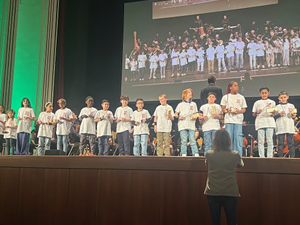 Am 07.05.2025 haben die Chorklassen der 4. Schuljahre ein Konzert in der Philharmonie gemeinsam mit dem WDR Rundfunkchor und der WDR Big Band gegeben. Als besonderer Gast war natürlich die „echte“ Maus im Konzert, moderiert wurde die Veranstaltung vom Andre Gatzke, bekannt durch die „Sendung mit der Maus“. Gemeinsam wurden Lieder über die Maus und das Singen vorgestellt. Auch „Mausfragen“ hat Andre mitgebracht und diese sehr anschaulich beantwortet. Die Kinder unserer 1. und 2. Klassen waren als Zuschauer eingeladen und gemeinsam hatten wir ein tolles Konzerterlebnis in der Philharmonie.
