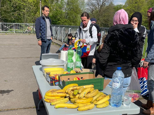 Am Montag haben die Mitarbeiter und Mitarbeiterinnen des FLIZmobils zusammen mit den Schulkindern und Lehrerinnen 8 Häppchenstände mit gesunden Kleinigkeiten und jeweils dazu ein Bewegungs- oder Erlebnisangebot in Form eines Marktes angeboten.