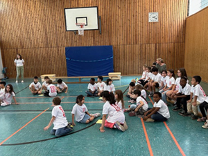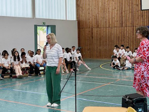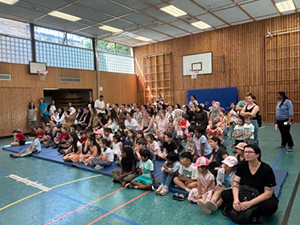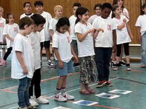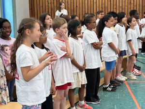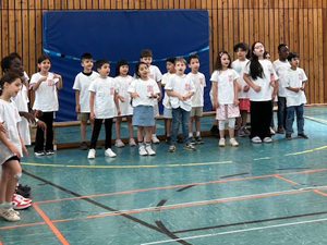 Deshalb haben wir am 03.07.2024 in der Turnhalle ein „Kleines Chorkonzert“ durchgeführt. Die Chorklassen der 3. und 4. Klassen haben einen Ausschnitt aus Ihrem Konzertprogramm vor den 1. und 2. Klassen der Schule präsentiert. Alle haben wunderbar gesungen und es gab reichlich Applaus!