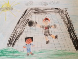 Am ersten Tag haben wir die Trainer kennengelernt. Die waren alle sehr nett. Das Elfmeterschießen fanden alle Kinder gut. Wir haben auch gemessen, wie kräftig wir schießen können. Am dritten Tag haben wir ein Turnier gemacht. Es war sehr schön beim Fußball. (Text u. Bild von Miche, Klasse 2a)