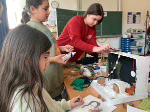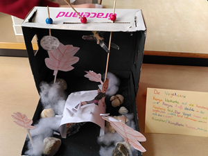 Nachdem die ganze Schule im Theaterstück „Ronja Räubertochter“ war, haben die Kinder der Jahrgangsstufe 4 Szenen im Kleinformat in Kartons nachgebaut. Die Kinder aus den anderen Klassen konnten ganz viel Bekanntes wieder erkennen und haben sich viele kreative Ideen zeigen lassen. Sogar eine kleine Aufführung gab es, in der Szenen nachgespielt wurden- inklusive drehbarer Bühne, wie im „großen“ Original.