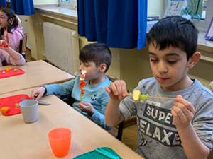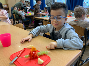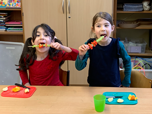 Das Flitzmobil war wieder in einigen Klassen der Heinickeschule unterwegs und die Kinder konnten super gesunde und vor allem leckere Vitamin-Spieße zusammenstellen. Passend dazu gab es Schorle mit frisch gepresster Orange! So starten alle mit hoffentlich viel neuer Energie in die Zeit nach den Osterferien!