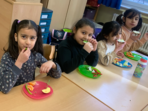 Die Kinder der Klasse 1 haben im Sachunterricht überlegt, was ein gesunder Körper alles braucht. Und was ist ganz wichtig? Na klar - gesundes Essen! Deswegen hat die ganze Klasse ein gemeinsames „gesundes Frühstück“ organisiert. Zum Glück hat jeder ganz viel gefunden, was nicht nur gesund ist, sondern auch richtig lecker schmeckt! Danke auch an alle Eltern für ihren Beitrag.