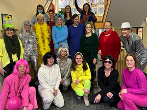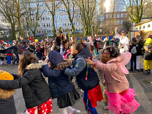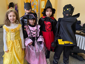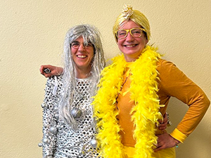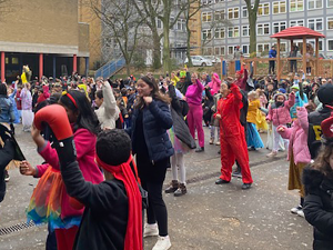 Endlich durften wir wieder Karneval in den Klassen feiern! In den Klassen gab es Spiele und auf dem Schulhof haben wir den Pinocchio-Tanz alle zusammen getanzt. Die Lehrerinnen hatten das Motto „Alle Farben“, aber ein Kind meinte, dass die Lehrerinnen „Omas in der Disco“ wären. Fast alle Kinder kamen verkleidet in die Schule. Es hat allen Beteiligten viel Spaß gemacht! Nun ein Rätsel: Wer ist die silberne Lehrerin und wer ist die gelbe Lehrerin?