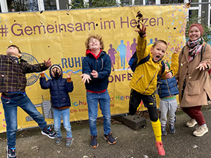 „Wir sind die Kinder von der Ruhr“ und „Pack die Badehose ein …“ war der Auftakt. Dann tanzten die Kinder unter der Leitung von Pawlina Cerna und Alexeider Gomez im Rahmen von „Chance Tanz“ die neue Choreographie „Ich und Wir“.