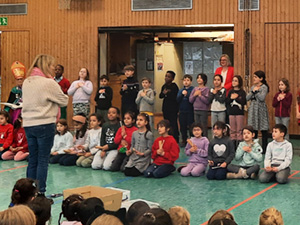Am Donnerstag, 23.2.23 hat uns im Rahmen von „Klassik for Kids“ das Saxophon Quartett besucht und alle Kinder der Schule auf eine musikalische Reise „In 28 Tagen durch Europa“ mitgenommen. Wir waren begeistert! Die Familien brauchten für diese außergewöhnliche Vorstellung nichts bezahlen, da Frau Warmuth einen Sponsor dafür gewinnen konnte.