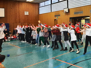 Am 19.12.2023 haben sich alle Schülerinnen und Schüler gemeinsam mit Ihren Lehrerinnen und Erzieherinnen und Erziehern zu einem weihnachtlichen Schulsingen in der Turnhalle getroffen. Alle Kinder hatten in den letzten Wochen fleißig Weihnachtslieder einstudiert und diese gemeinsam in der Turnhalle gesungen. Es wurde vom „Kling Glöckchen“ und vom Frieden gesungen und allen musikalisch „Merry Christmas“ gewünscht. Als Überraschungsgast war Frau Warmuth als ehemalige Schulleiterin zu Besuch, das hat alle riesig gefreut.