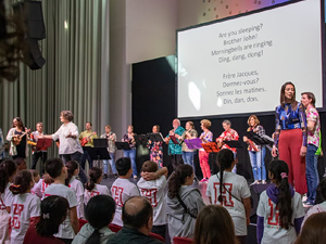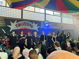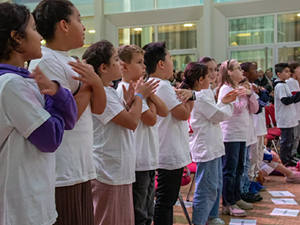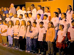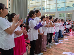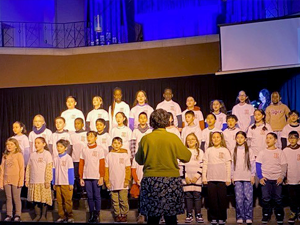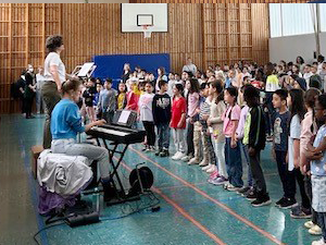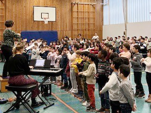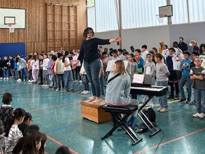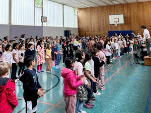 Deshalb haben wir am 03.07.2024 in der Turnhalle ein „Kleines Chorkonzert“ durchgeführt. Die Chorklassen der 3. und 4. Klassen haben einen Ausschnitt aus Ihrem Konzertprogramm vor den 1. und 2. Klassen der Schule präsentiert. Alle haben wunderbar gesungen und es gab reichlich Applaus!
