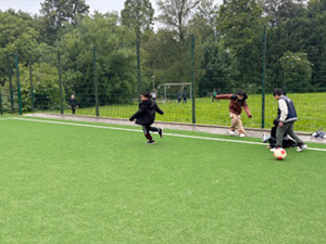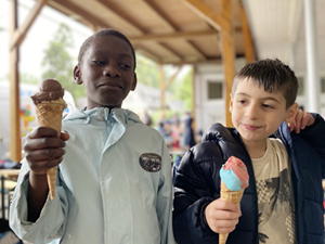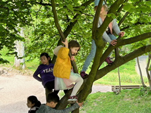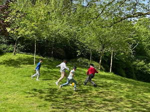 Auf dem großzügigen Außengelände und dem neu gestalteten Fußballplatz konnten alle Kinder ausgiebig spielen und sich viel bewegen. Im Verlauf des Vormittags fing es leicht an zu regnen, das hat die Kinder aber nicht beim Spielen und Toben gestört. Zum Abschluss unseres Ausflug kam der Eiswagen an den Baldeneysee und jedes Kind hat ein leckeres Eis bekommen.