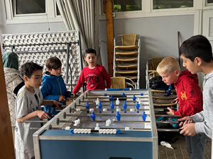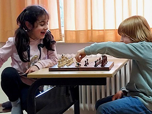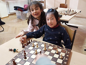 Seit einigen Wochen bietet die OGS für interessierte Kinder eine Schach AG an. Hier sollen die Kinder mit dem Schachspielen vertraut gemacht werden, die einzelnen Figuren und ihre Züge kennenlernen und sich im Spiel ausprobieren. Ziel dieses Angebotes ist es außerdem, besonders begabte Kinder in ihrem strategischen Denken anzuregen und zu fördern. Die Schach AG wird von Herrn Schwager, einem passionierten Schachspieler im Ehrenamt geleitet. Alle Kinder nehmen mit großer Freude an dieser AG teil und suchen jede Woche eine neue Herausforderung im Schachspiel!