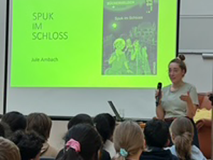 Die Kinder der 3. und 4. Klassen unternahmen am 07.10 einen Ausflug zur Stadtbibliothek. Dort las die Autorin Jule Ambach aus ihrem Buch „Spuk im Schloss“ vor und beantwortete die vielen Fragen unserer Kinder.