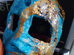 Mit diesen venezianischen Masken der FaiS Kinder und einem fröhlichem" Helau" schicken wir die Schulgemeinschaft in den Karneval.