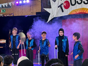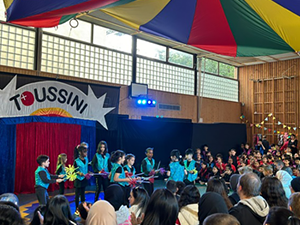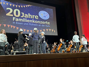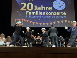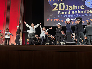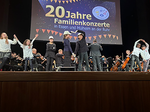 Zum 20jährigen Jubiläum der Familienkonzert in Essen wurde „Das große Fest“ gefeiert. Die Kinder der Klassen 4a und 4b haben auch in diesem Jahr wieder aktiv auf der Bühne in der Essener Lichtburg vor mehr als 1000 Zuschauern mitgewirkt. Die Schülerinnen und Schüler haben sich einen eigenen Tanz zu Edward Griegs „Norwegischen Tänze“ ausgedacht und vorgeführt. Im ersten Teil spielten Kinder fröhlich auf der Bühne, doch im zweiten Teil erwachten in einigen Darstellern die Trolle, um die Kinder zu erschrecken und zu necken. Zum Glück wurde es im dritten Teil wieder friedlich, die Trolle haben sich zurückgezogen und alle Kinder fröhlich auf der Bühne getanzt. Natürlich wurde die Darbietung mit einem riesigen Applaus belohnt.