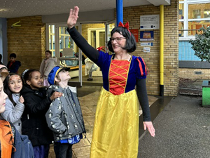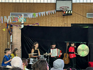 Im Rahmen des 11. Essener Festival für Theaterpädagogik in Schule führten die Ganztagskinder von Jahrgang 1 sowie einige Kinder von Jahrgang 3 am 3. Juni 2024 ihr selbstgeschriebenes Stück " Die Prinzessinnen WG" in der Weststadthalle auf. Mit viel Freude und etwas Lampenfieber unterhielten die jungen Schauspieler*innen ihr Publikum und nahmen den begeisterten Applaus am Ende voller Stolz entgegen.