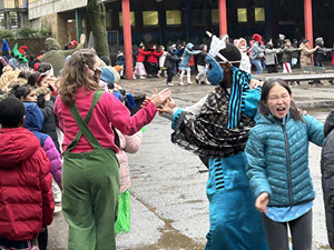 Wie in jedem Jahr machten sich alle Kinder auf den Weg zum Grillo-Theater, um gemeinsam „Die rote Zora und ihre Bande“ anzusehen. Die drei Waisenkinder Zora, Pavle und Duro nahmen sie mit auf ihr Abenteuer und zeigten, wie man auch schwierige Situationen durch Zusammenhalt, Mut und Solidarität meistern kann. Die Aufführung war spannend und unterhaltsam. Besonders das tolle Bühnenbild mit dem Geheimversteck und der Türkisnaschvogel sorgte für große Begeisterung. Die selbstgebastelten Fischen wurden zu einem Teil der Aufführung, was das Ganze noch einmal einzigartig machte.