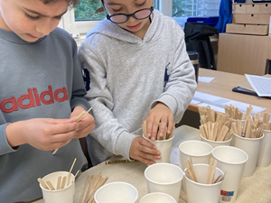 Vor den Sommerferien verwandelten sich die Klassenräume der jetzigen dritten und vierten Jahrgänge in sehr kreative Kunsträume. Die Kinder und Lehrerinnen bastelten drei Tage lang angeleitet von ausgebildeten Figurenbauern wunderbare große Adler, Bienen und Seelachse/ Fische als Stabtiere nach den Designs von Jill Joubert. Der WDR interviewte einige Kinder für die Maus-Live-Sendung.