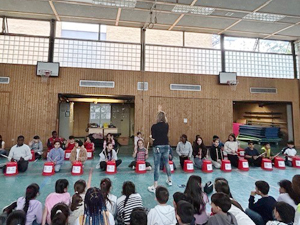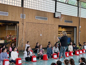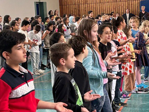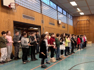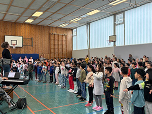 Am 19.03.2024 haben sich alle Kinder und Lehrer unserer Schule zum traditionellen Schulsingen in der Turnhalle getroffen. Mit dem „Dschungellied“, gesungen in verschiedenen Sprachen, ging das gemeinsame Singen los. Auch der Frühling wurde mit dem Lied „Alle Vögel sind schon da“, sogar zweistimmig gesungen, herzlich begrüßt. Alle Kinder und Erwachsenen hatten viel Freude beim gemeinsamen Singen und waren ganz erstaunt, dass alle Kinder unserer Schule so schön zusammen singen können. Wir freuen uns schon auf das nächste Schulsingen im Sommer!
