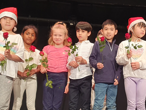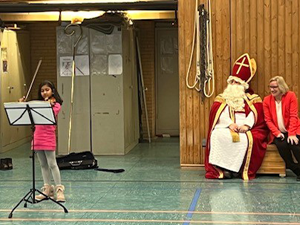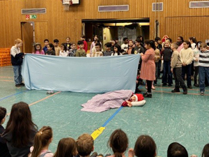 Am 06.12.2024 fand traditionell unsere Nikolausfeier für alle Schulkinder in der Turnhalle statt. Alle Klassen hatten ein kleines Programm einstudiert und dem Nikolaus vorgeführt. Es wurde viel getanzt und gesungen, ein kleines Singspiel aufgeführt und ein selbstgedichtetes Lied vorgetragen. Auch ein Instrumentalstück wurde dem Nikolaus auf der Violine vorgespielt.