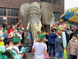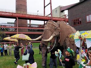 Am Freitag, 30.8.24 war es endlich soweit, die bunte Celebration Parade fand extra für die Heinickeschulkinder an der Zeche Zollverein statt. Zwei lebensgroße Elefanten und ein kleines Elefantenjunges, die für diese Parade aus Südafrika angereist waren, liefen umgeben von sichtlich beeindruckten, entzückten und fröhlichen Kindern und Erwachsenen über das Gelände der Zeche Zollverein. Von Musik begleitet wurden die vom Aussterben bedrohten Tierarten eindrucksvoll zum Leben erweckt.