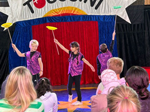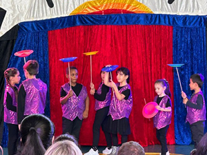 Zu Beginn des Schuljahres haben alle Kinder der Schule mit einer Zirkuswoche gestartet. Die Kinder konnten selbst wählen, an welcher Zirkusgruppe sie teilnehmen wollen. Es gab Jongleure und Akrobaten, Zauberer und Fakire, Diabolo-Spieler und Teller-Akrobaten und natürlich lustige Clowns.