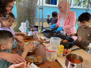 Am 13.4. und 14.4.2024 war die Schule an der Heinickestraße Bannerstandort des Konfettilaufes. Vier geführte Spaziergänge durch das Südviertel wurden angeboten und die Schulpflegschaft hat an beiden Tagen ein wunderbares Buffet mit internationalen Spezialitäten und Kuchen angeboten. Vielen Dank dafür!