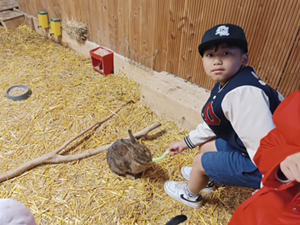 Wir erleben zusammen mit den Kindern die Natur. Es wird geklettert und gematscht, aber auch ganz still den Vögeln gelauscht. Die Flohkrebse im Bach oder auch ein Frosch wird beobachtet.
