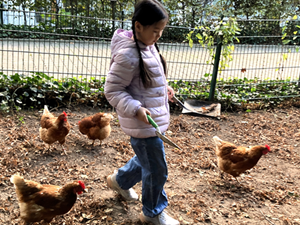 Tag für Tag wurden die Hühner zutraulicher und neugieriger. Kein Wunder, wurden sie doch von ihren jungen Fans mit gesunden Leckereien und Streicheleinheiten verwöhnt. Doch bei der Pflege ging es nicht nur ums Füttern und Kuscheln. Frühmorgens hieß es: ran an den Hühnerstall! Gehege säubern, Wassernäpfe auffüllen, Körner nachfüllen – gemeinschaftliche Arbeit, die stolz machte.