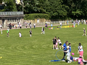 Am 12.06.2025 haben alle Kinder der Heinickeschule auf der Schillerwiese ein Sportfest gefeiert. Bei herrlichem warmen und sonnigen Wetter konnten sich alle Kinder in den Sportdisziplinen Werfen, Springen und Laufen messen. Außerdem durften die Kinder sich an vielen anderen Sportstationen ausprobieren und ihre sportlichen Fähigkeiten verbessern. Es wurde über Hürden gesprungen, im Slalom gelaufen, mit Teppichfliesen eine Strecke zurückgelegt oder mit Bällen auf ein Ziel geworfen.