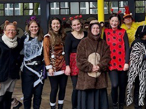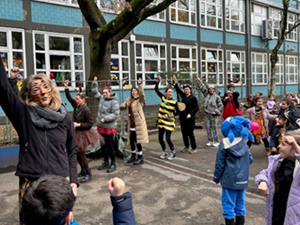 Auch in diesem Jahr wurde mit allen Kindern, Lehrinnen, Erzieher und Erzieherinnen ausgiebig Karneval gefeiert. In der Hofpause hat die gesamte Schulgemeinschaft zusammen getanzt und gelacht. Danach wurde in den Klassen mit Frühstücksbuffet und Spielen weiter gefeiert. Die Kostüme waren bunt und vielfältig, die Erwachsenen haben sich diesmal als Tiere verkleidet.