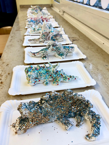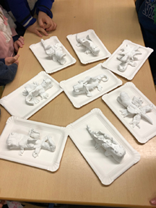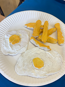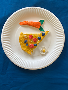 Die Kinder der Klasse 2b haben ihre Lieblingsspeisen aus Salzteig geformt, bemalt und als ihr Leibgericht auf einem Teller angeordnet. Sie haben den Künstler Claes Oldenburg kennengelernt, der Lebensmittel als riesige Skulpturen anfertigt.
