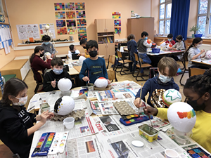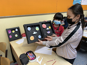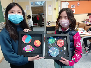 Anknüpfend an den Ausflug zum ZEISS Planetarium Bochum, gestalteten die Kinder der Klasse 4b ihr eigenes Weltall.