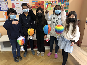 Die Kinder der Klasse 3a kleisterten aus alten Zeitungen, Joghurtbechern und Luftballons fliegende Kunstwerke. Jeder Heißluftballon ist einzigartig, genau wie die vielen Ideen der Kinder, wo ihre Reise hingehen könnte.