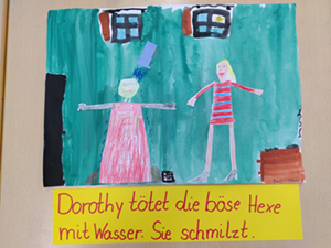 Die Kinder der Klasse 3b haben vor dem Besuch des Grillotheaters das Buch "Der Zauberer von Oz" gelesen und ihre Vorstellungen von den Figuren gezeichnet.