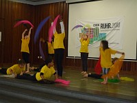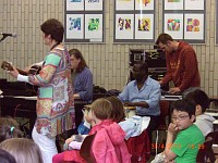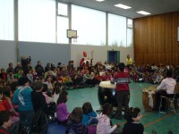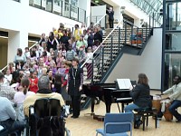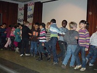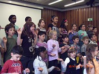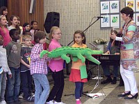 Auf einer großen Bühne im benachbarten Berufskolleg präsentierten 50 Kinder lustige Zirkuslieder.Das Publikum erlebte freche Zirkushunde, wilde Reiter, junge Elefanten und bissige Krokodile. Auch ein Zirkusriesentausendfüßler trat auf.