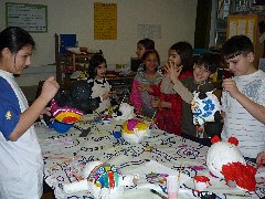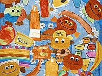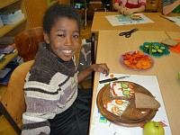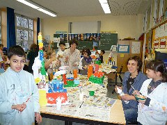 Die Verfremdung alltäglicher Gegenstände ist das zentrale Thema des Künstlers Claes Oldenburg. Die Klasse 4b nähte und bastelte Nahrungsmittel wie Möhren, Brot und Eis, sowie ganze Mittagsgerichte. Der Höhepunkt war ein gemeinsames „Mittagessen“ an einer stilvoll gedeckten Tafel.
