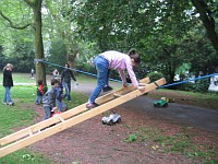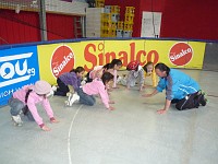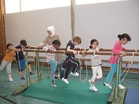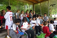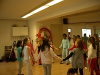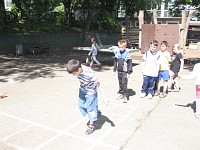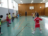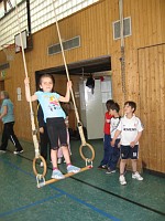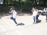 Die anderen Klassenverbände wurden für die Projekttage aufgelöst, und jedes Kind hat sich in einer Projektgruppe sportlich betätigt. Die Altersmischung von Klasse 2 bis 4 in jeder Gruppe ist für die Kinder eine besondere wichtige Erfahrung des Miteinanders gewesen, die Jüngeren lernen von den Älteren, die Großen lernen Rücksicht zu nehmen auf die Kleinen.
