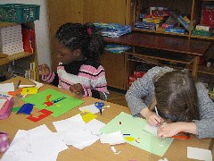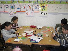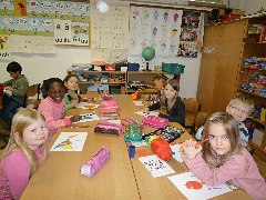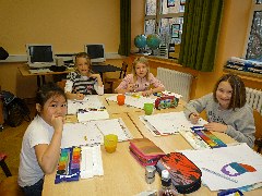 Die Klasse 1a beschäftigte sich mit dem Künstler Ottmar Alt. Hier malen und kleben die Kinder farbige Fantasietiere.
