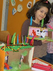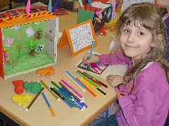 In den Klassen 3a und 3b entstanden Bilder und Häuser, die dem Künstler Friedensreich Hundertwasser nachempfunden waren.