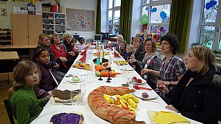 Mit der Gemeinschaftsarbeit „Picknick mit den Schmusebrötchen“ beteiligte sich die Klasse 3a am Malwettbewerb der Bäckerei Peter. Sie gewann einen der fünf Hauptpreise: ein Frühstück für die ganze Klasse. Am 9. Juni war es soweit. Zwei nette Damen der Bäckerei Peter kamen um 9.30 Uhr und bereiteten alles für ein „Superfrühstück“ vor. Nach der Hofpause konnten die Kinder und Lehrerinnen der 3a es sich so richtig schmecken lassen. Für sie stand fest: Bei nächsten Malwettbewerb der Bäckerei Peter sind wir auf jeden Fall wieder dabei.