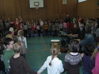 Schon bald war das Lied vom "Gummibär" auf dem ganzen Schulgelände zu hören. Musikalisch unterstützt wurden wir von unserem Trommellehrer, Herrn Saa-Korsah, und Herrn von Brocke am E-Piano. Wir freuen uns schon auf den nächsten Termin am 18.1.2011.