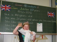 Queen Elizabeth feierte ihr 60- jähriges Thronjubiläum. Die Klasse 3a feierte im Englischunterricht mit. Wir spielten Rollenspiele und sahen uns Filme über Queen Elizabeth und ihre Familie an.