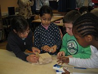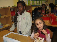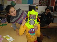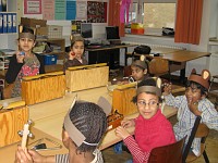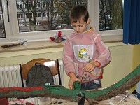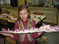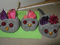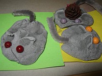 Sie gestalteten Mäuse aus Salzteig und bastelten aus Kartons Wohnungen für sie. Um die Geschichte als Theaterstück vorführen zu können, gab es viel zu tun: Kulissen malen, Masken basteln, lesen, eine Geräuschegeschichte erarbeiten und alles aufeinander abzustimmen. Damit wurde die Klasse natürlich nicht in den drei Projekttagen fertig. Es ist geplant, daran weiterzuarbeiten und demnächst das Theaterstück vorzuführen.