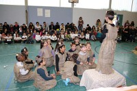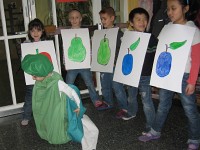 Die Klasse 1a führte das Singspiel „Die kleine Raupe Nimmersatt“ auf. Während der diesjährigen Kunstprojektwoche probten, malten und bastelten die Kinder eifrig Kostüme und Requisiten für ihre Aufführung. Der Tüchertanz wurde von Sina Horsel mit den Kindern einstudiert und aufgeführt. Die Kinder der 1b zeigten „Frederick“, die Geschichte einer Maus, frei nach dem Bilderbuch von Leo Lionni. Auch sie waren während der Projektwoche mit dem Malen der Kulisse, dem Einstudieren der Lieder und Tänze und dem Einüben der Texte beschäftigt. Nach viel Applaus durch das große Publikum konnten sich die kleinen Künstler und ihre Eltern mit Kuchen, Saft und Grillwürstchen auf dem Schulhof stärken. Die Eltern hatten gut für alle Gäste gesorgt und gegen die kühlen Temperaturen halfen wahlweise eine Tasse heißer Kaffee oder ein knackiges Grillwürstchen!