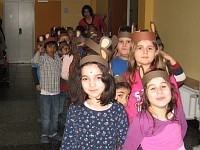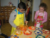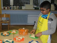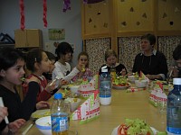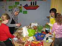Die Projektwoche war wieder ein voller Erfolg. Drei Tage lang beschäftigten sich die KInder mit dem Thema "Kunst" im weitesten Sinne. Hier auf dem Bild zeigen die Kinder ihre Kochkünste. Sie richten einen ägyptischn Pyramidensalat an. Das hat geschmeckt!