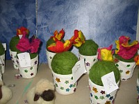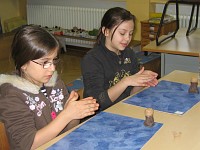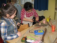 Kinder aus dem 4. Jahrgang übten sich in der Filzkunst. Ganz begeistert wandten sie die Techniken des Nass- und Trockenfilzens an. Sie gestalteten Pinguine, Kakteen, Armbänder, Schafe und kleine Bilder.