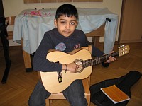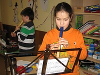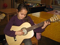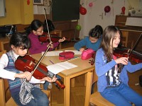 Die Jeki-Kinder aus den 3. und 4. Klassen spielten bisher immer nur in ihrer eigenen Instrumentengruppe Geige, Gitarre oder Blockflöte. Während der Projektwoche fand ein großes Experiment statt: Alle Instrumente durften zusammen spielen! Das war gar nicht so einfach. Unter der Leitung von Herrn Kuhn aus der Folkwang Musikschule übten 16 Kinder drei Musikstücke ein. Sie lernten nicht nur, die Lieder richtig zu spielen, sondern auch auf das Spiel der anderen Instrumente zu hören, den eigenen Einsatz zu finden und zu verstehen, dass der Dirigent den Ton angibt.