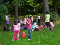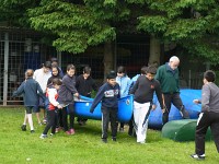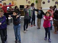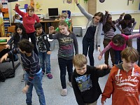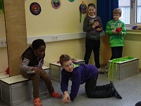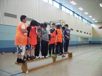 Die anderen Klassenverbände wurden für die Projekttage aufgelöst, und jedes Kind hat sich in einer Projektgruppe sportlich betätigt. Die Altersmischung von Klasse 2 bis 4 in jeder Gruppe ist für die Kinder eine besondere wichtige Erfahrung des Miteinanders gewesen, die Jüngeren lernen von den Älteren, die Großen lernen Rücksicht zu nehmen auf die Kleineren.