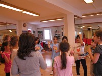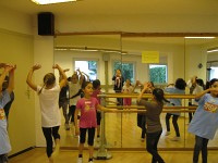Im Tanzstudio "MOVE-UP" an der Brunnenstraße wurde wieder drei Tage lang getanzt. An der Stange gab es zunächst ein Aufwärmtraining. Die Tanzpädagogin Wendy Weldon studierte mit den Mädchen verschiedene Choregraphien zu tollen Hits ein.