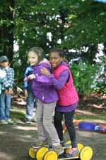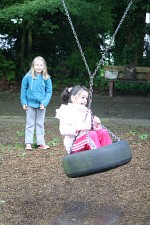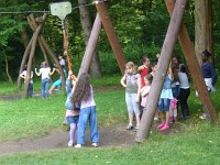 Nach der Ankunft am Ziel haben die Kinder in der Außenanlage